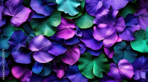 A vibrant arrangement of purple and green leaves, creating a stunning visual contrast that captivates the eye.