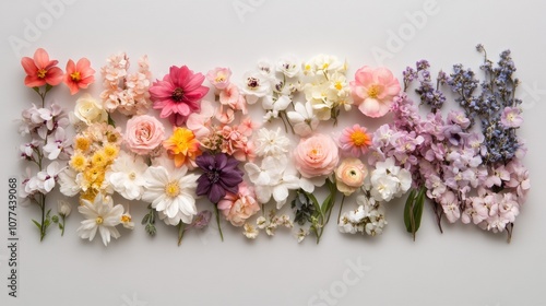 flower, colourful, arrangement, nature, diversity, vibrant, display, horizontal, beauty, floral, collection, artful, light background, shape, garden, flower petals, blossom, spring, summer, bouquet, decoration, natural, fresh, elegant, delicate, pastel, high-coloured, botanical, horticulture, ornamental, aesthetic, serene, peaceful, harmony, texture, variety, bloom, lush, fragrant, seasonal, artistic