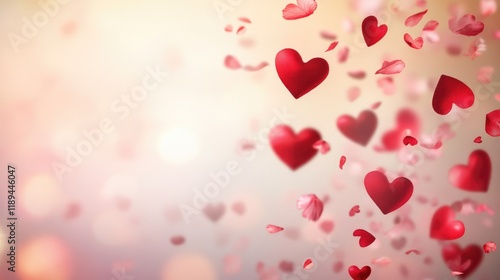 A vibrant background featuring floating red hearts and petals, symbolizing love and romance.