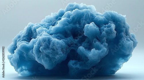A vibrant blue cloud-like formation against a neutral background, evoking tranquility and creativity