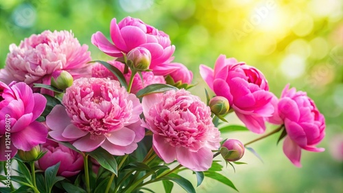 A vibrant bouquet of pink peonies in full bloom against a soft white background
