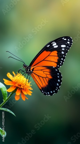 A vibrant butterfly perched elegantly on a bright flower, showcasing nature's beauty and the delicate balance of life.