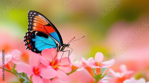 A vibrant butterfly perched on a colorful flower, showcasing nature's beauty and the harmony of colors in a serene garden setting.