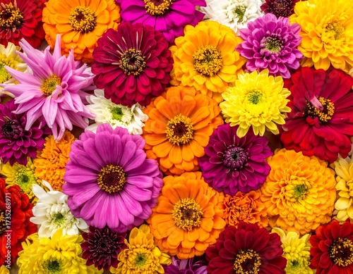 A vibrant carpet of colorful zinnia flowers