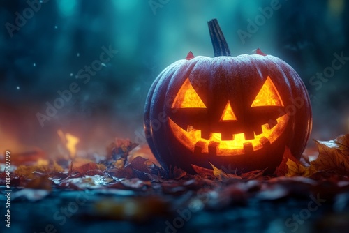 A vibrant cinematic scene filled with enchanting Halloween elements: a moonlit night, glowing pumpkins, and playful ghosts, weaving a tale of festive magic and spooky adventure