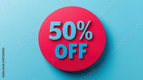 A vibrant circular sign displaying "50% OFF" against a blue background, indicating a sale or discount promotion.