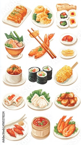 A Vibrant Collection of Asian Cuisine Dishes: Exquisite Illustrations of Culinary Delights