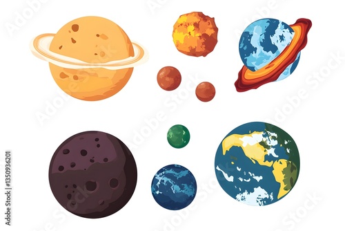 A vibrant collection of cartoon planets and asteroids perfect for kids educational materials space themed designs and whical illustrations.