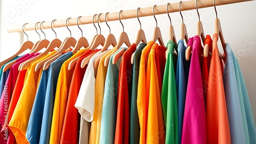 hanger, clothes rack, retail, rainbow, shop, material, wooden, garment, textile, clothing, decor, fashion, design, arrangement, pattern, style, collection, colourful, fabric, display