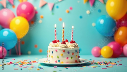 A vibrant, colorful birthday celebration with balloons, cake, and confetti Festive, joyful, and celebratory , happy birthday, banner