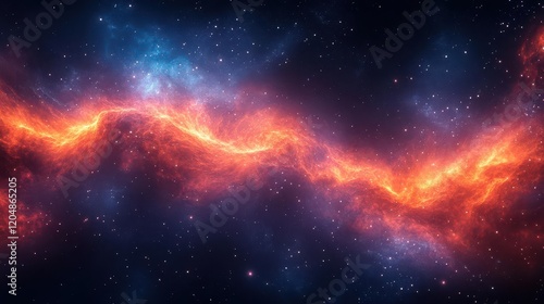 A vibrant cosmic scene featuring swirling clouds of orange and blue gases against a dark starry background, depicting the beauty of the universe.