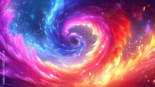 A vibrant cosmic swirl of colors, suggesting movement and energy in a fantastical setting.