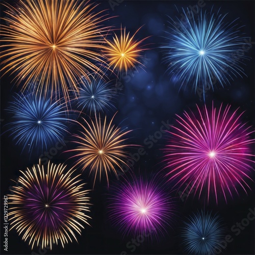 A vibrant display of colorful fireworks bursting in the dark night sky, AI generated