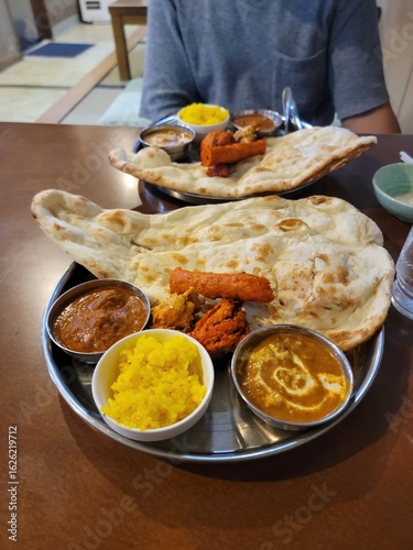 curry, rice, indian food, food photography, culinary, spice, aromatic, tasty, delicious, flavorful, dinner, lunch, meal, traditional, culture, gastronomy, vegetarian, non-vegetarian, sauce, presentation, epicure, eatery, dining, dish, platter, indian culture, asian cuisine, table setting, epicure, ethnic food, authentic, bread, saucy, serving