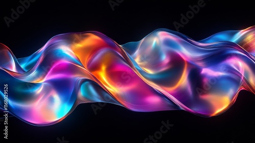 A vibrant, flowing wave of colorful light against a dark background, creating a mesmerizing, abstract visual effect.