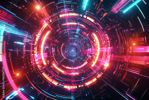 digital, technology, neon, light, energy, futuristic, tunnel, abstract, design, motion, colourful, circuit, pattern, space, visualisation, dynamic, bright, glowing, line, graphic, innovation, flow, cyber, illusion, depth, virtual, ambience, modern, aesthetic, luminescent, vibrant, creative, tech, art, environment, structure, round, spiral, connectivity, network, kaleidoscope, spectrum, cybernetic, atmosphere