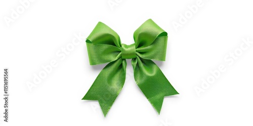 A vibrant green bow, elegantly tied, isolated against a pure white backdrop, craft, fabric