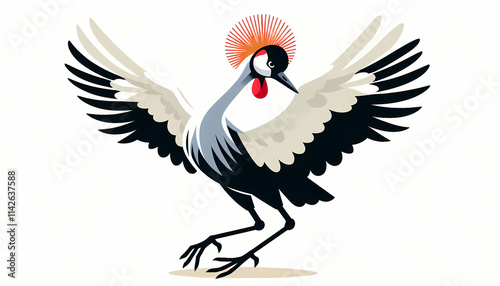 A vibrant illustration of a red-crowned crane showcasing its striking plumage and graceful stance.