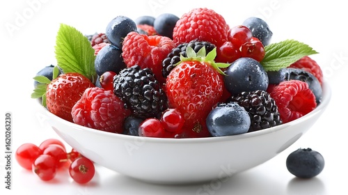 A vibrant medley of fresh berries artfully arranged in a bowl, a visual delight