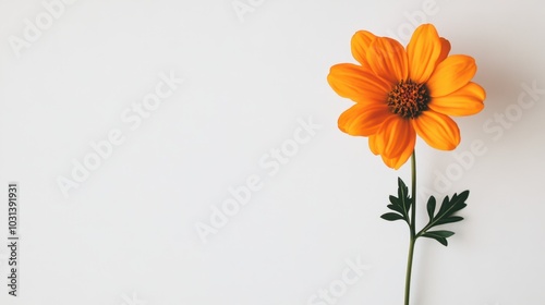 A vibrant orange daisy with vivid petals, standing alone against a crisp white background, creating a striking and beautiful contrast.