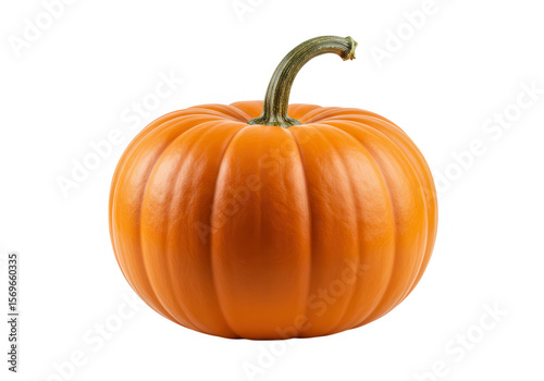 A vibrant orange pumpkin with a green stem isolated on transparent background