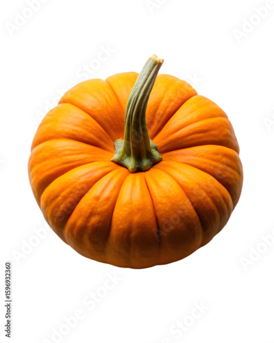 A vibrant orange pumpkin with a green stem sits isolated on a pure transparent background, embodying the essence of autumn