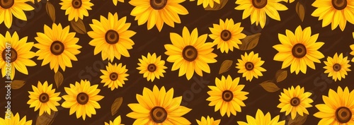 flower, sunflower, yellow, brown, nature, pattern, floral, design, bright, cheerful, flower petals, leaf, garden, decoration, vibrant, beauty, texture, field, summer, bloom, growth, organic, freshness, sunshine, colours, seasonal, landscape, art, aesthetic, illustration, background, botanical, rustic, warmth, visual, creative, harmony, lively, rural, earth, environment, spring, joy, colours, artistic