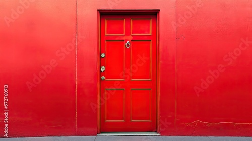 A vibrant red door set against a bold red background, representing opportunity and adventure.