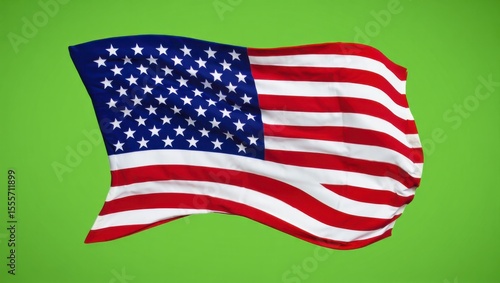 A Vibrant Representation of an American Flag Gently Waving Against a Bold Green Background, Symbolizing National Pride and Identity