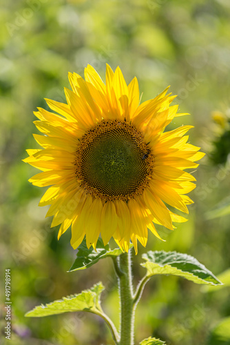 A vibrant sunflower on a summers day, with a shallow depth of field