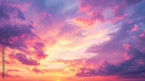 A vibrant sunset sky filled with colorful clouds in shades of pink, purple, and orange, creating a serene and breathtaking view.
