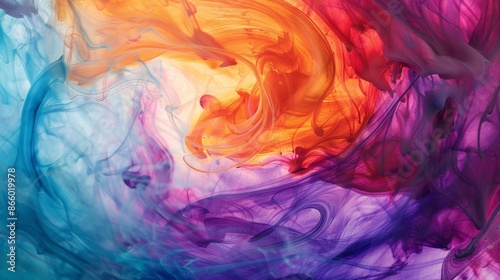 vibrant, swirl, coloured, ink, blending, merging, creating, dynamic, abstract, composition