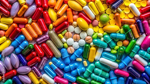 A vibrant tapestry of colorful capsules and tablets, a symbolic representation of the diverse spectrum of health and wellness