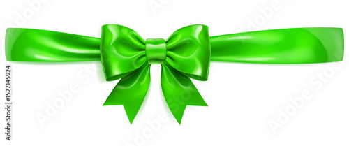 A vibrant vector illustration with beautiful large green shiny bow with horizontal ribbon and soft shadow on white background, perfect for gift wrapping or decorative purposes.