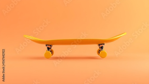 A vibrant yellow skateboard captured at a dynamic angle against a gradient background with motion effects.