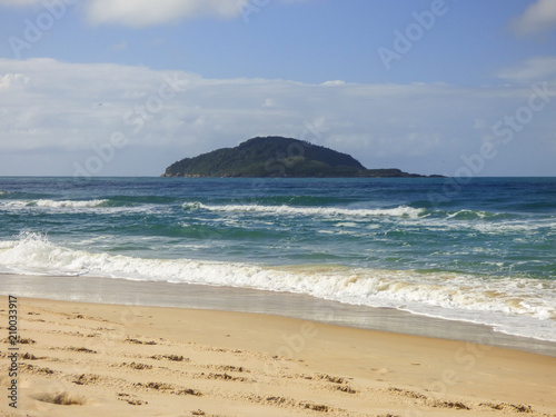 A view of Mocambique beach, island in the background - Florianopolis, Brazil
