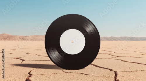 A vinyl record with a blank label, placed on a neon green and yellow background. The vibrant neon light provides clear copy space. The lighting is smooth and diffused, creating a modern lookd