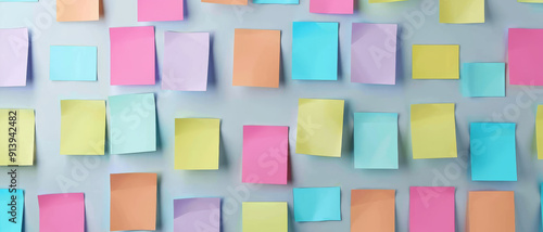 A wall filled with an array of colorful sticky notes, creating a vibrant and organized display of thoughts and reminders.