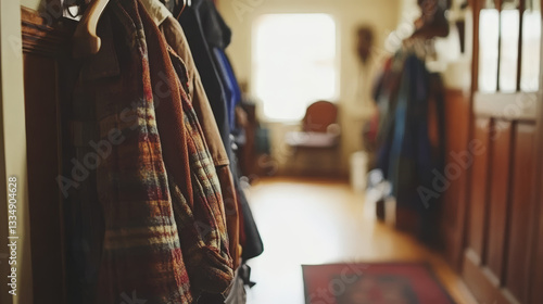 entranceway, home interior, cosy, coat rack, welcoming, entrance, interior design, rustic, homelike, wooden floor, soft light, comfortable, domestic, warm colors, casual attire, organised, practical, home decor, warm tones, people, person