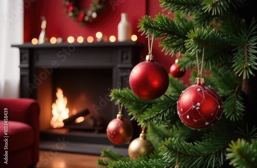 christmas, holiday, fireplace, decorated, tree, cosy, festive, ornament, chaplet, seasonal, warm, design, red, gold, atmosphere, inviting, celebratory, winter, home, interior, relaxation, tradition, joy, comfort, cheerful, light, celebration, christmas, hearth, family, gathering, pine, warmth, glow, merry, spirit, calmness