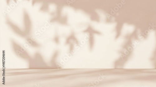 A warm cream-toned studio with a delicate leaf shadow overlay, perfect for seasonal product displays—transition effortlessly from autumn warmth to tropical summer vibes. Ideal for cosmetic showroom pr