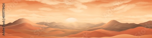 A warm, vibrant sunset over a desert landscape with sand dunes and hills, in trendy terracotta hues, banner