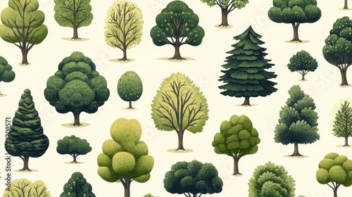A Watercolor Illustration Featuring Various Trees Against a White Background