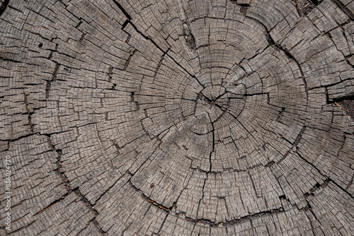 A weathered tree stump in cross section showing the weathered texture and the growth rings_06262021_2788.