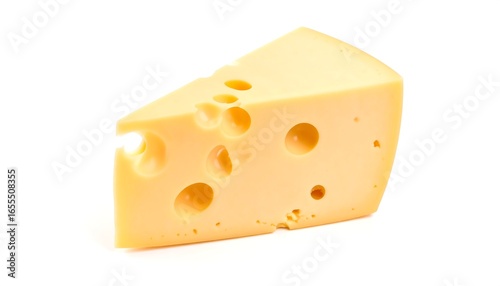 cheese, wedge, yellow, hole, dairy, food, swiss, delicious, texture, isolated, white, background, snack, meal, alimentary, calcium, product, dairy product