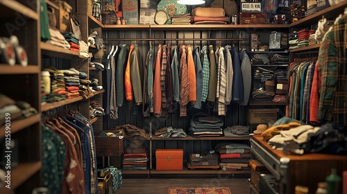 A well-organized wardrobe with a mix of hanging clothes, folded items on shelves, and accessories in compartments, showcasing a practical and aesthetic storage solution