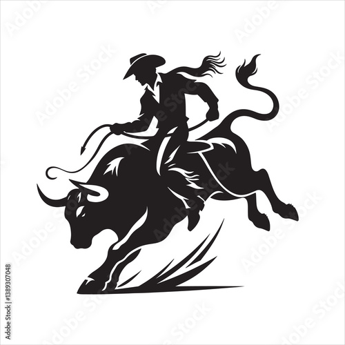 A Western Cowboy Bull Rodeo Silhouette Logo and T-Shirt