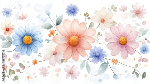 whimsical, hand, drawn, daisy, pattern, subtile, pastel, ideal, childcare center, stationery, simplicity, no people, ornate, textile, elegance, background, horizontal, old-fashioned, repetition, springtime, floral pattern, illustration, art, abstract, botany, design, vector, flower, leaf, beauty, decoration, nature, seamless pattern, plant, summer, blossom, pink, bouquet, floral, flower, spring, bloom, white, isolated, chrysanthemum, cosmos, flora