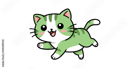 animal, animated, art, cartoon, cat, character, cheerful, clip art, cute, design, digital artwork, domestic, drawing, ear, friendly, fur, graphic, green, happy, icon, illustration, isolated, joyful, kitten, mammal, mascot, mint, outline, pet, playful, simplified, striped, stylised, sweet, tail, vector, whimsical, white background