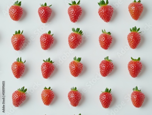 A white backdrop with an isolated set of strawberries. - ai